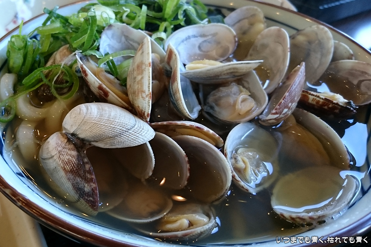 帰りに、テレビCMを見て食べたいと思っていた、丸亀製麺の「あさりうどん」を食べてきました。普通は広告と実際の差にがっかりすることが多いですが、この「あさりうどん」は、広告そのまま。期待を裏切らないあさりの量で、重さにすると250g、個数でいくと20~30個くらいがのっています。小鍋にだしと一人分のあさりを入れて煮るという手間をかけています。その小鍋のだしがそのままうどんのだしになるので、だしもあさりのエキスたっぷりでとても美味しいです。また食べに行きたくなりました。