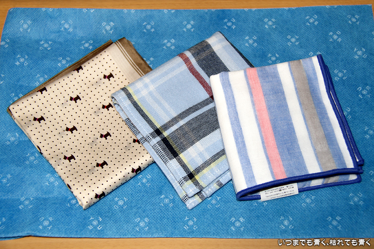ちょっと意外だったので、嬉しくて中をみると、ハンカチが3枚。